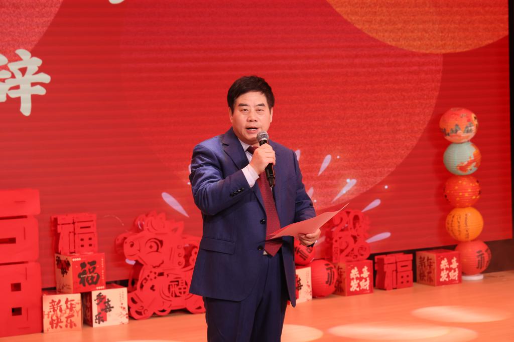 焦洪涛在致辞中表示,值此辞旧迎新之际,学校2025年“基础建设年”取得了丰硕成果。他指出,这一年,学校重点实现了五方面突破:一是强化党建引领。 首次党代会、工代会胜利召开,省级样板党支部及“二十四节气”网络思政品牌创建成效显著,“五老代表”更是荣获“全国关心下一代工作先进工作者”称号。二是深化改革攻坚。 全面启动“十五五”规划编制,持续完善制度体系与内控管理,项目资金执行率高居全省高校首位。三是深耕育人。水文与工程地质专业群成功获评省级双高,专业建设、内涵建设与师生技能竞赛水平节节攀升,学生资助绩效考核获“优秀”等次。四是拓展开放办学。中马合作项目与非脱产专业办学正式获批,实现新突破;地质专业学子“随企出海”,取得新成果;在校生规模稳步增长,近达1.2万人。五是优化服务保障。学校二期工程及教育部应急试点院校成功获批,教职工待遇显著提升。展望未来,学校将继往开来,共赴2026年新征程。