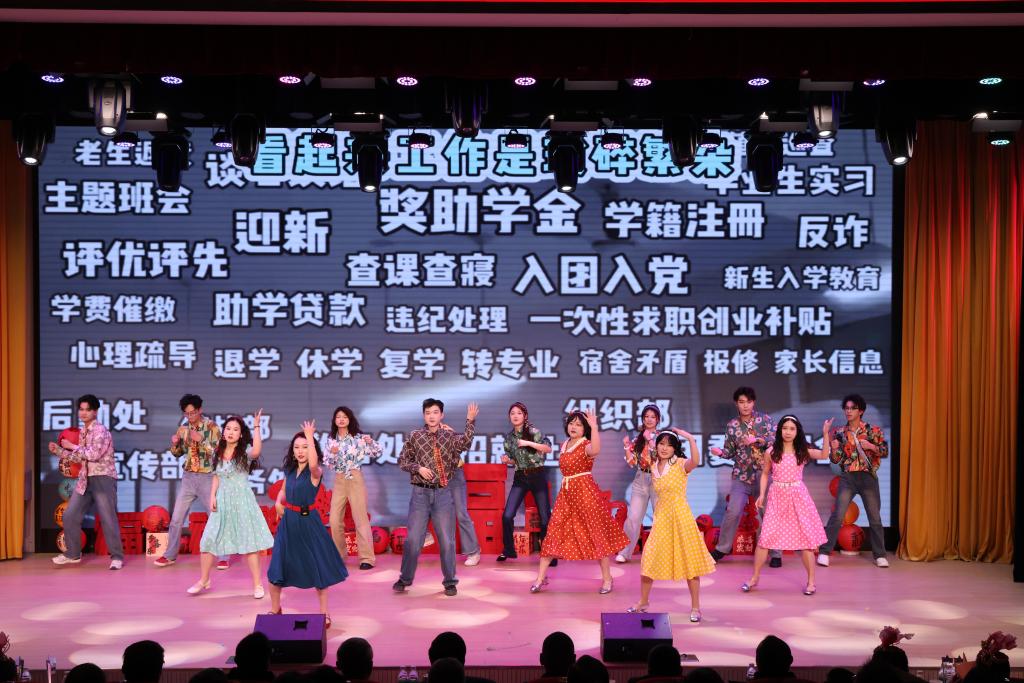 情景剧《时光里的引路人》以真实师生故事为蓝本,生动再现了教师们潜心育人、润物无声的奉献精神;《健身操》节奏明快、活力满满,展现了师生们健康向上的生活态度;三句半《庆元旦》语言诙谐、形式活泼,用接地气的表达送上了对学校和师生的美好祝福;舞蹈《辅导员阵线联盟》创意新颖、动感十足,展现了辅导员队伍的青春活力与责任担当。