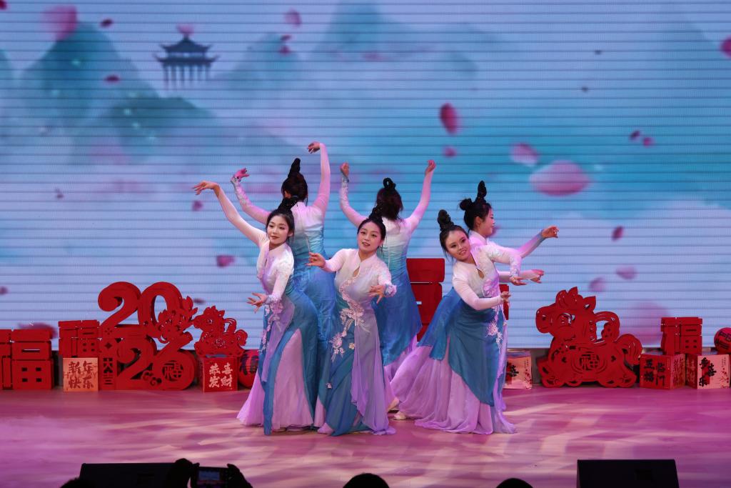 手鼓舞《月亮照山川》鼓点激昂、舞姿奔放,展现了多民族文化的魅力与交融;诗词朗诵《党的礼赞》感情真挚、声情并茂,字里行间饱含着对党的无限崇敬与感恩之情;歌舞剧《绣红旗》重现了革命先辈的热血岁月,演员们的深情演绎让现场观众深受触动,接受了一次深刻的红色精神洗礼;《地矿生花》作为彰显学校特色的原创节目,旋律优美、歌词励志。中国舞《春翎蝶》舞姿轻盈、柔美灵动,宛如春日蝴蝶翩翩起舞,传递出对新年的美好期许。