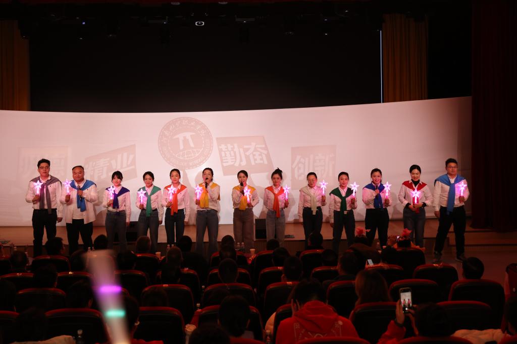 联欢会在欢快的开场歌舞中拉开帷幕,绚烂的灯光与学生们活力四射的表演相得益彰,瞬间点燃了现场气氛,展现出地矿人蓬勃向上的精神风貌。