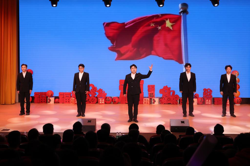 随后,一系列精心编排的节目轮番登场,亮点纷呈、高潮迭起。相声《地矿歌后》以幽默诙谐的语言融入地矿行业特色,将勘探工作中的趣事与坚守化作欢声笑语,引发全场共鸣;舞蹈《珊瑚颂》舞姿优美、意境悠远;男生小合唱《强军战歌》铿锵有力、气势磅礴,唱出了青年学子心系家国、报效祖国的赤子情怀。